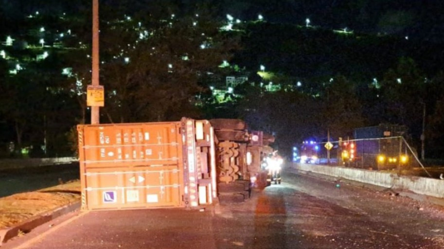 Según el ECU 911, la alerta del accidente de tránsito ingresó a las 02:39. Un tráiler perdió estabilidad y se volcó en el sentido sur-norte de la avenida Simón Bolívar, quedando atravesado sobre la calzada. A pesar de lo aparatoso del incidente, no se reportaron personas heridas.