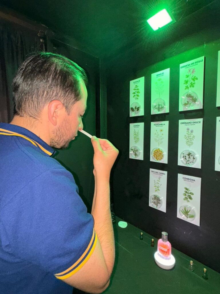 El recorrido funciona como un juego guiado. Los participantes identifican cinco descriptores aromáticos: dulce, floral, cítrico, herbal y especiado, presentes en recetas de Saraguro, Chuquiribamba y Loja. Al completar la actividad, reciben una puntuación que compara sus aciertos con los de un catador experto. Esta dinámica, además, genera datos reales que la UTPL incorporará a un estudio científico en curso sobre el Aromatómetro.