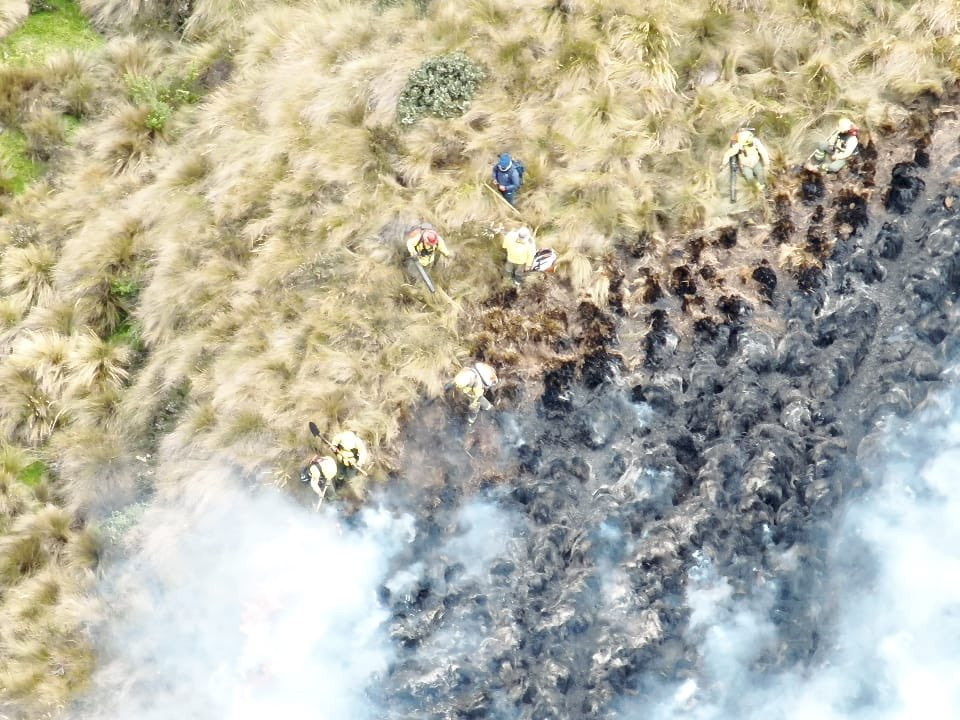 “Tras casi 24 horas de trabajo, el incendio forestal en el cerro Sincholagua ha sido controlado”. Así confirmó Cárdenas en sus redes sociales, compartiendo imágenes de los pajonales calcinados tras el paso de las llamas.