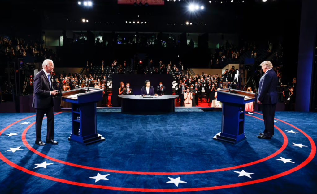 - Ubicación de Podios: Biden a la derecha, Trump a la izquierda.