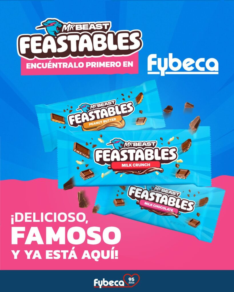 Feastable, los chocolates de MrBeast llegaron a Ecuador y los encuentras en Fybeca, marcando un nuevo hito para el retail farmacéutico ecuatoriano. Con 95 años de trayectoria, Fybeca reafirma su compromiso con la innovación y la experiencia del cliente. Además, es el primer retail farmacéutico del país en ofrecer los populares chocolates creados por Jimmy Donaldson, más conocido como MrBeast.