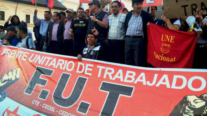 Andrés Quishpe, presidente de la Unión Nacional de Educadores (UNE), invitó a otras organizaciones a sumarse a las movilizaciones por subsidio al diésel. Además, los dirigentes informaron que participarán en la marcha en Azuay para rechazar el proyecto minero Loma Larga.