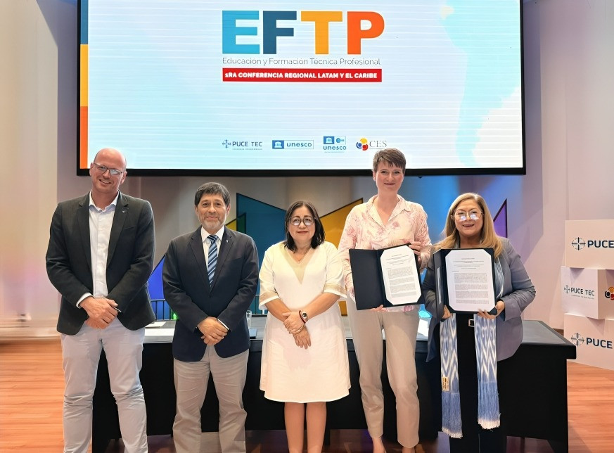 Bajo este contexto, Quito es sede de la Primera Conferencia Regional de Educación y Formación Técnica y Profesional (EFTP) en América Latina y el Caribe, que se realizó del 16 al 18 de julio, en la Pontificia Universidad Católica del Ecuador (PUCE).