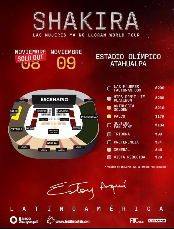 Los boletos del primer show se agotaron rápidamente, evidenciando una demanda descomunal. Por ello, la organización añadió otra fecha para atender la alta afluencia de fans y permitirles asistir al segundo concierto de Shakira en Ecuador.